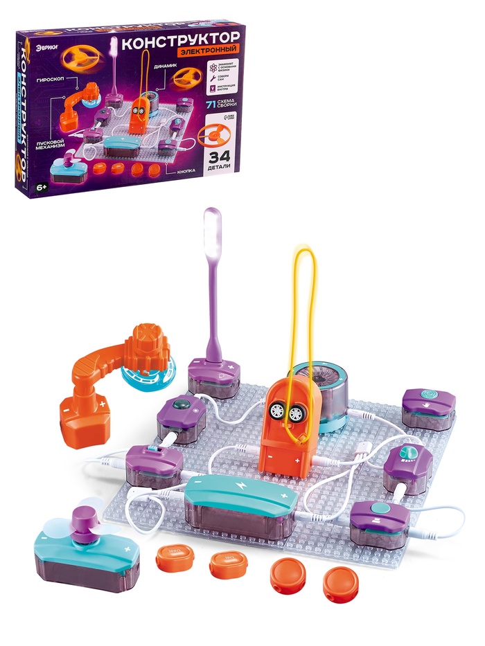 Электронный конструктор «Эврики» разработан специально для маленьких любителей экспериментов. Набор погрузит ребёнка в мир физики и электроники, расскажет, как работать с электрическим сопротивлением, и какую роль в цепи выполняет каждая деталь! Отлично подойдёт детям от 6 лет.