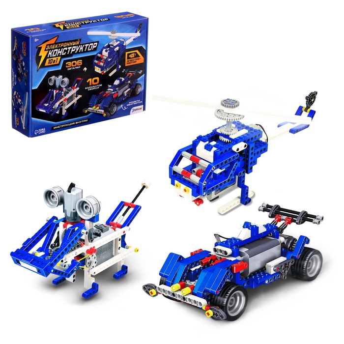 Собери, подключи, запусти — оживи свою технику! Электронный конструктор с мотором (306 деталей) — это первые шаги в робототехнике. 10 вариантов сборки от простых машинок до сложных механизмов — инженерные эксперименты начинаются здесь.
