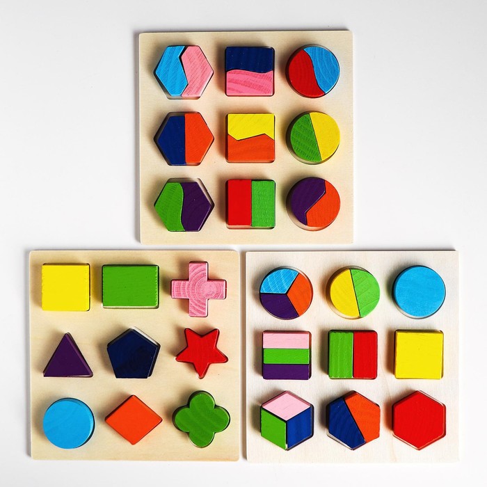 - Набор включает три объёмные деревянные головоломки, изготовленные из натурального дерева и безопасных материалов.