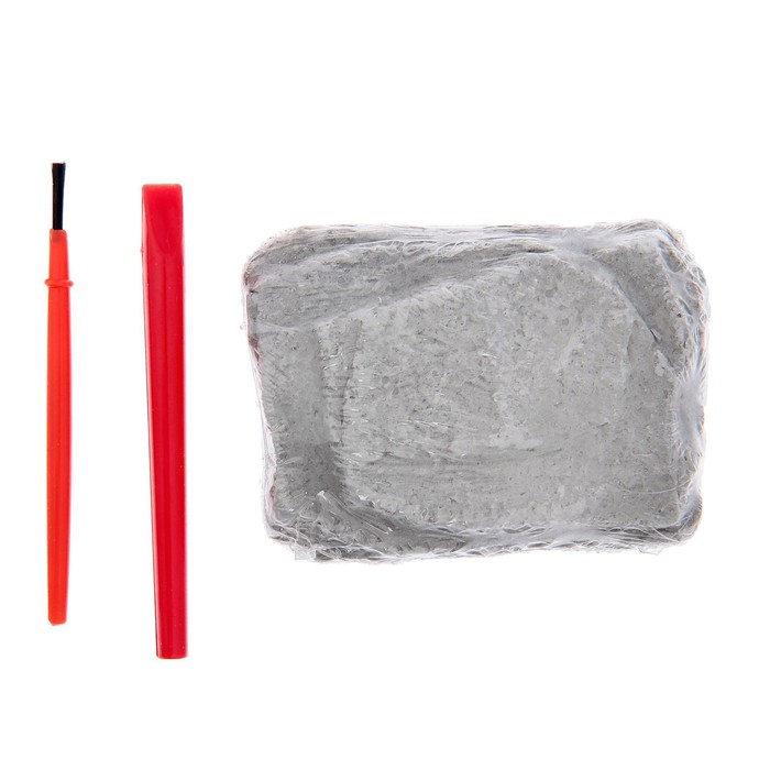 В наборе: долото, кисточка, гипсовый объект с кладом внутри.
