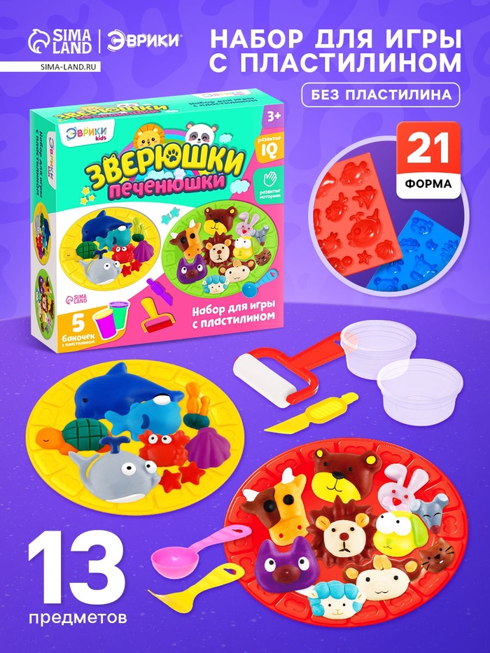 Игровой набор с пластилином «Зверюшки-печенюшки» станет отличным подарком для ребёнка, который любит творить! Маленькие пекари смогут «испечь» милых зверят и украсить их, как настоящие печенья.