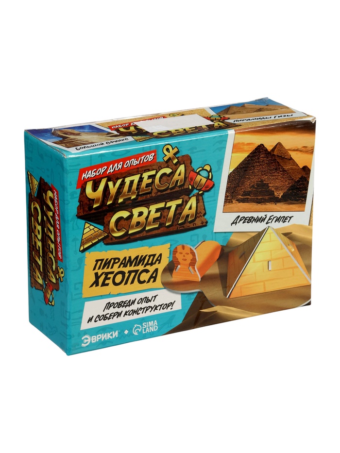 С набором для опытов «Чудеса света: Пирамида Хеопса» ребёнок своими руками соберёт модель самой большой пирамиды Египта, узнает интересные факты о ней, а также проведёт увлекательный опыт по химии.
