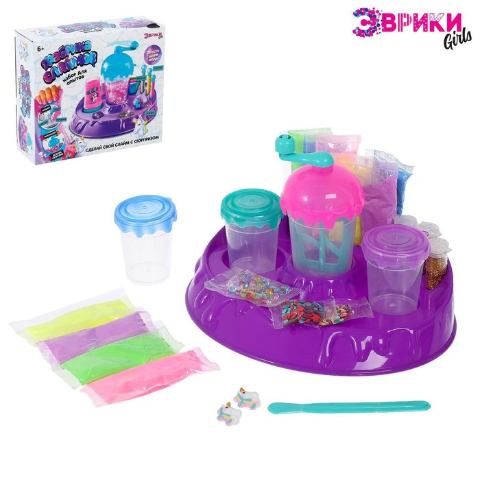 С этим набором ребёнок сможет попробовать себя в роли настоящего химика и создать слаймы разных видов: воздушные, тянущиеся, хрустящие или пушистые. А добавляя блёстки, красители и другие компоненты, он получит уникальный результат каждый раз!