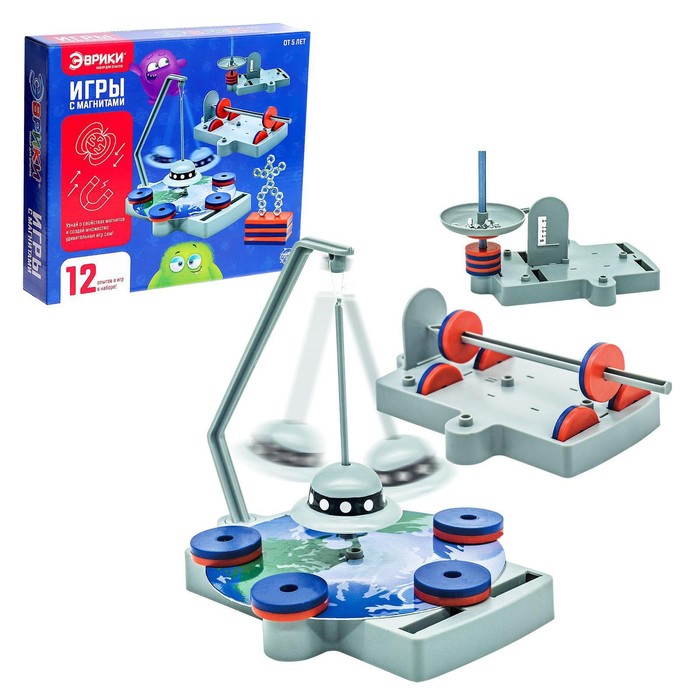 Магниты — удивительные предметы, которые используются повсюду, например, на производстве с их помощью поднимают и перемещают тяжёлые и большие грузы. С набором для опытов «Эврики» ребёнок узнает о свойствах магнитов и проведёт 12 опытов и игр.