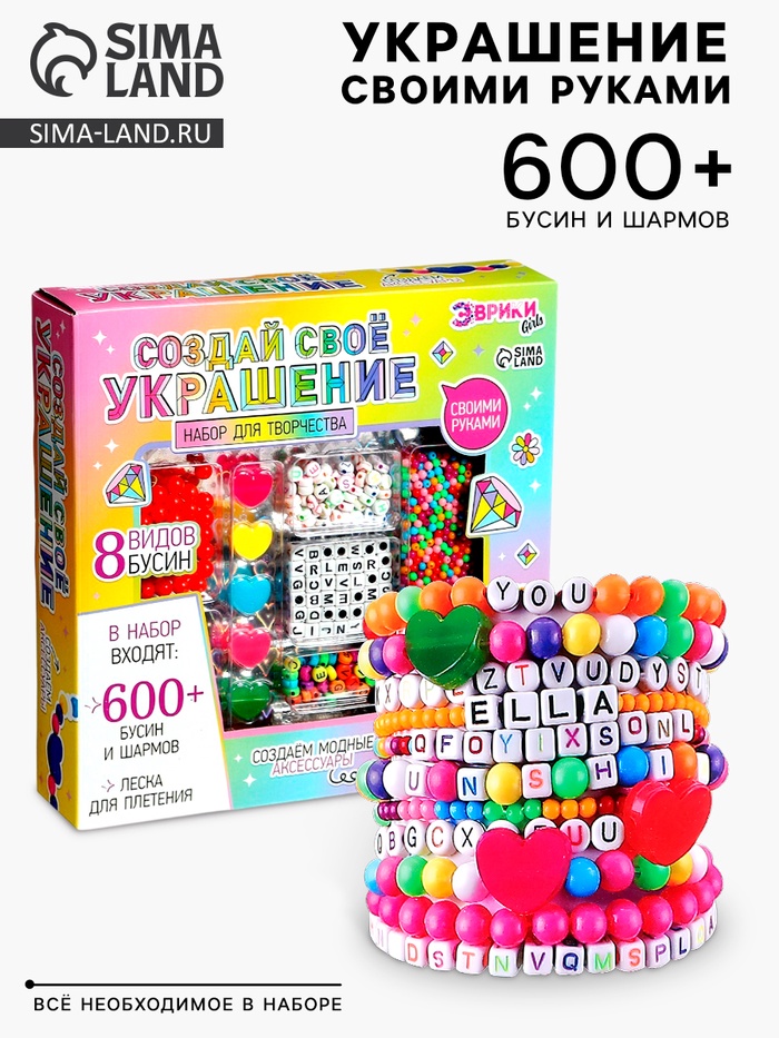 - В комплекте есть бусины с буквами, из которых можно составить надпись на браслете.