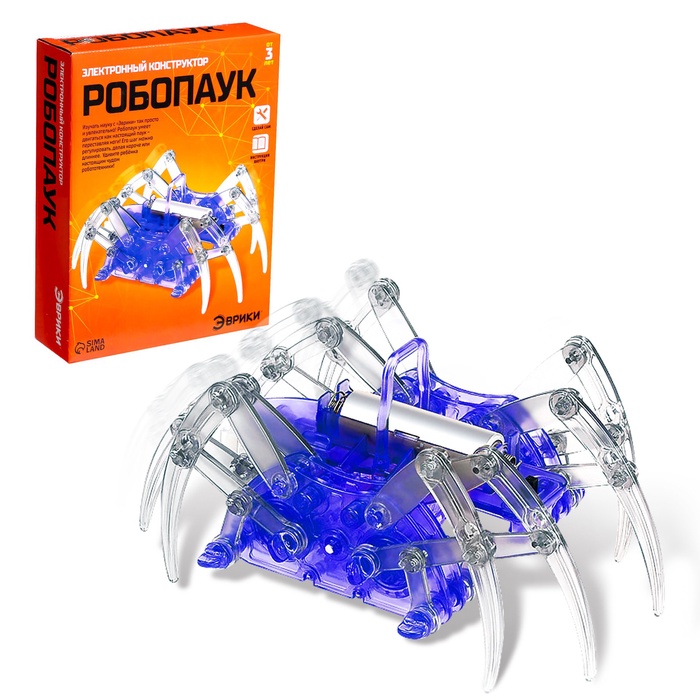 С набором торговой марки «Эврики» ребёнок пройдёт курс робототехники и сконструирует правдоподобного паука. Благодаря складным лапкам киберживотное реалистично повторяет движения настоящего членистоногого. В процессе игры юный инженер сможет менять длину шагов паука и его походку.