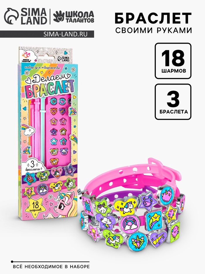 С этим набором малышка создаст целых 3 уникальных браслета с шармиками, которые подойдут к любому образу.